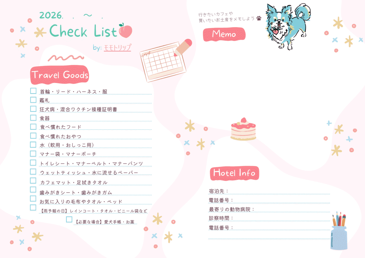 モモトリップオリジナル愛犬旅行持ち物チェックリストを作成しました。